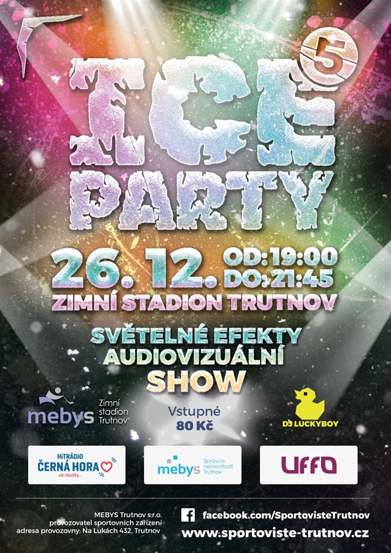 Stává se pomalu tradicí, že Vám o vánočních svátcích provozovatel sportovních zařízení přináší dárek v podobě audiovizuální show na zimním stadionu s DJ Lucky BOYem. Tak neváhejte a 26.12.2019 od 19:00 hod. si společně zatančíme na ledě. Jednotné vstupné pro všechny návštěvníky činí 80 Kč.