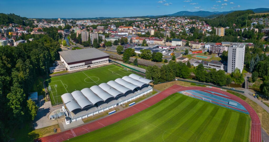 Městský stadion jehož součástí je atletický stadion, travnaté fotbalové hřiště a hřiště s UT IV. generace s umělým osvětlením je situován u zastavěné části města, 5 minut z centra. Atletický stadion s nově vybudovaným moderním povrchem a to včetně všech sektorů a fotbalová hřiště s moderní tribunou včetně zázemí, jsou umístěny mezi zimním stadionem a tenisovými kurty. Spolu s krytým bazénem, zimním stadionem, tenisovými kurty a aquaparkem z druhé strany vytváří velkolepý sportovní komplex, kde si i Ti nejnáročnější ze sportovců najdou své místo pro svůj trénink a regeneraci.